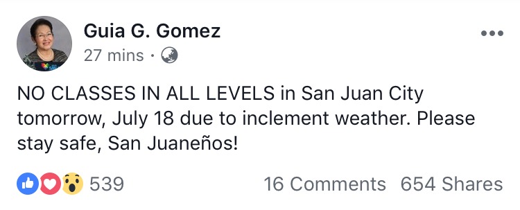 July 18, 2018 Class Suspension - Immaculate Conception Academy