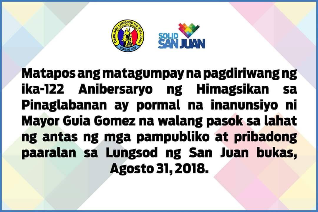 30 Aug Class Suspension August 31, 2018 Posted at 13:13h in Announcements, General, News, Uncategorized by ICA 0 Comments Share Spread the loveAs per Mayor Guia Gomez’s announcement below, classes are suspended for August 31, 2018.