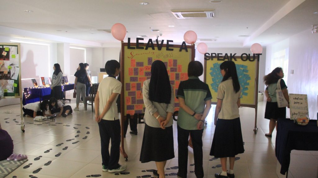 Guests were also invited to speak up and leave a message on a freedom wall. Footprints which bore the reasons why students take pride in being a part of the HUMSS strand were strategically placed on the floor, helping the guests navigate the exhibit venue. A photo booth