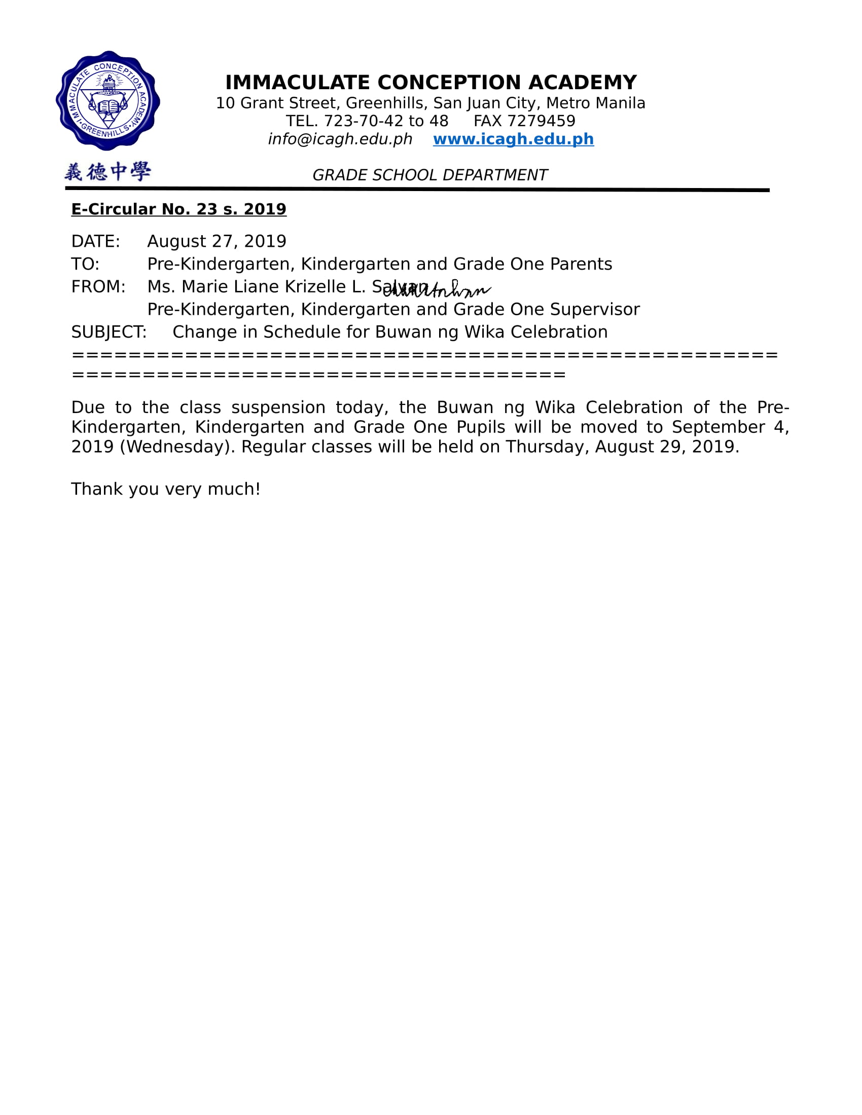 E-Circular # 23 Circular re Buwan ng Wika Celebration change-1 - Immaculate Conception Academy
