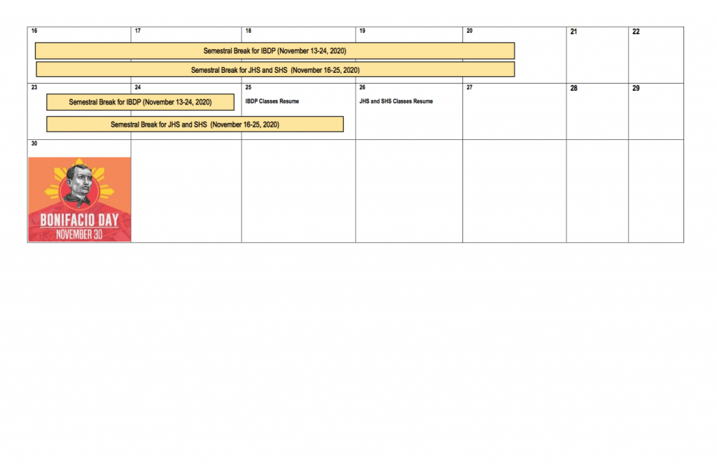 High School Calendar of Activities for the Month of November 2020 - Immaculate Conception Academy