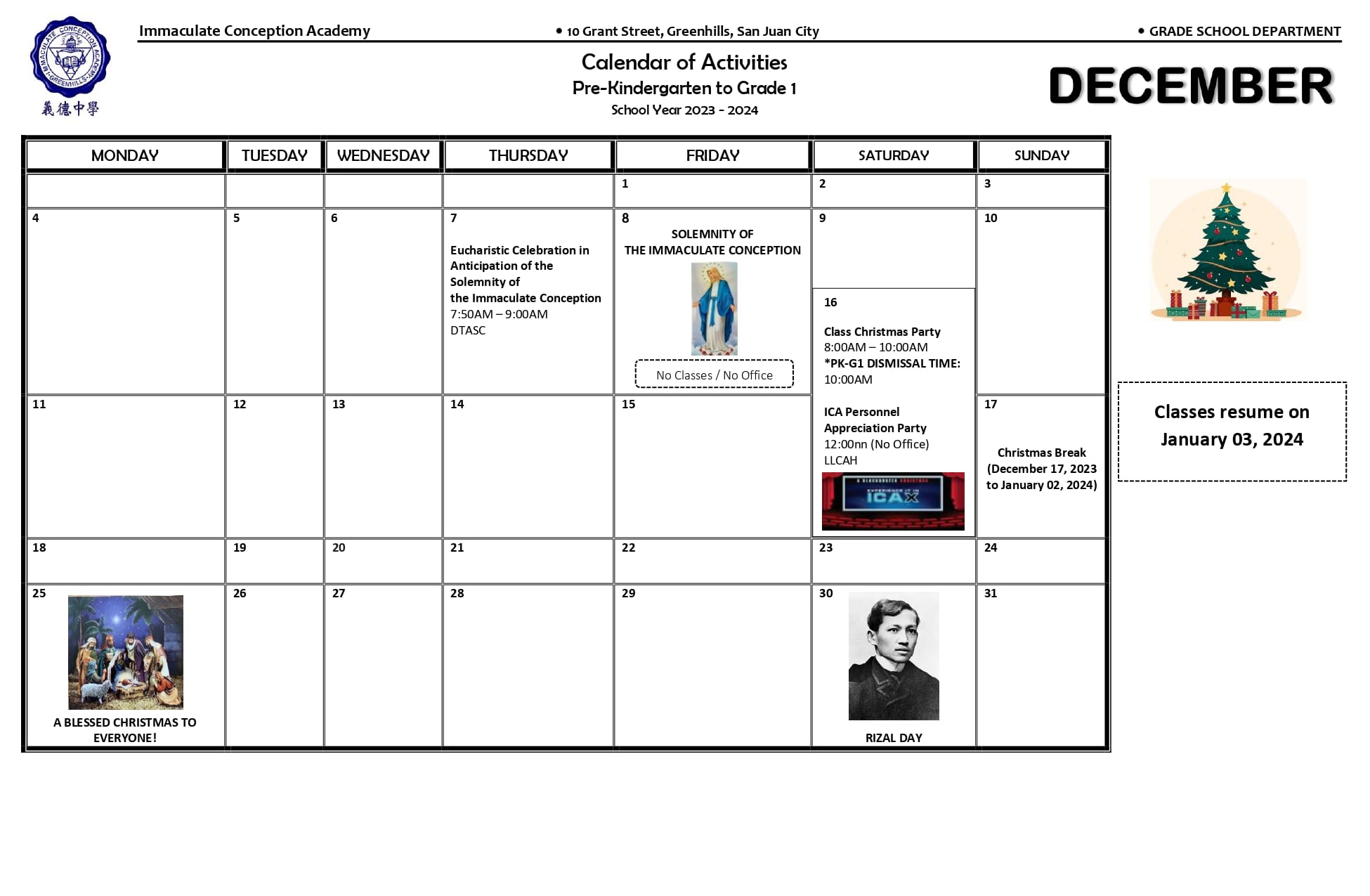 GS-PK1 DECEMBER CALENDAR_page-0001-min - Immaculate Conception Academy