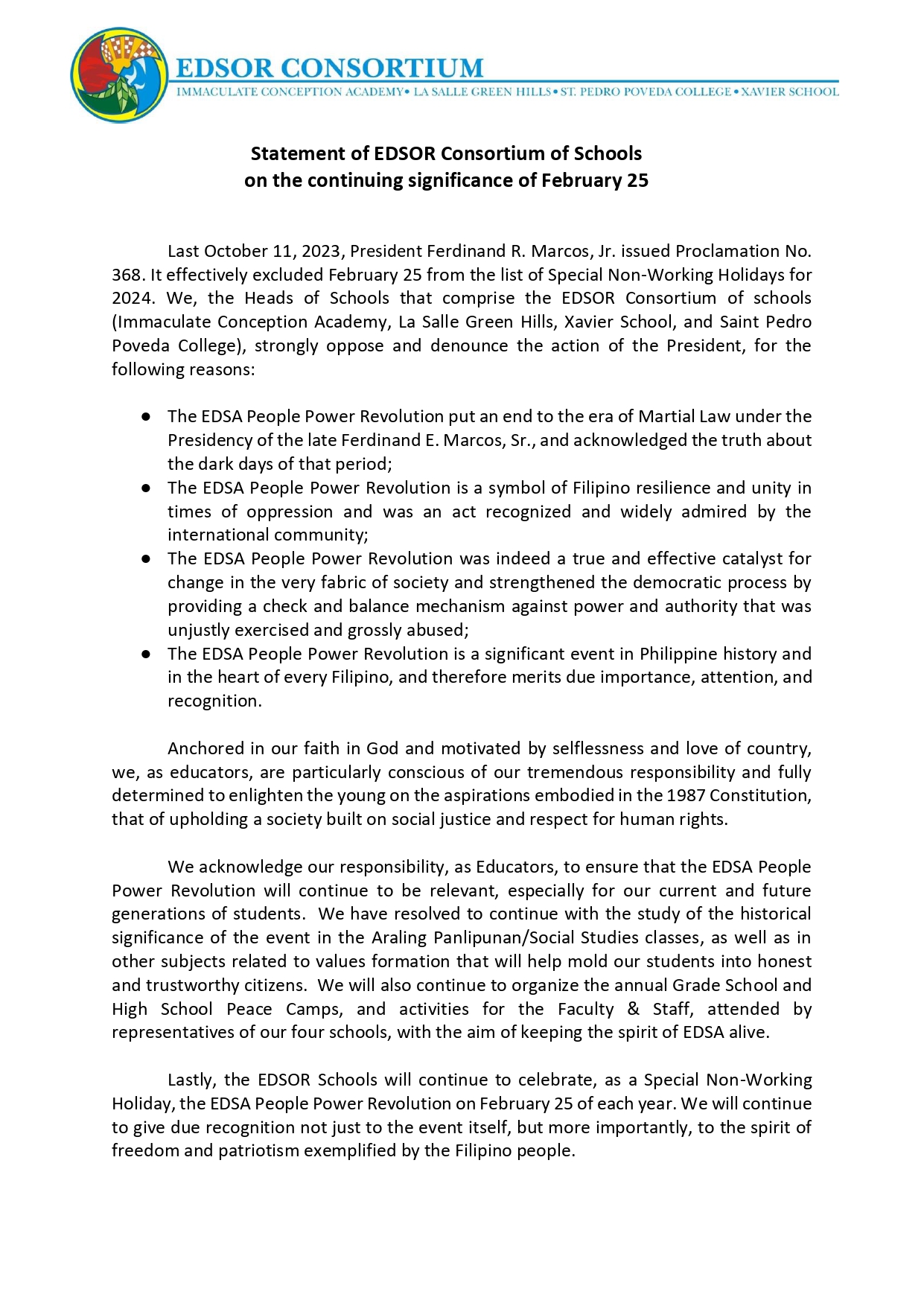 Statement of EDSOR Schools on the Continuing Significance of Feb. 25_page-0001 - Immaculate Conception Academy