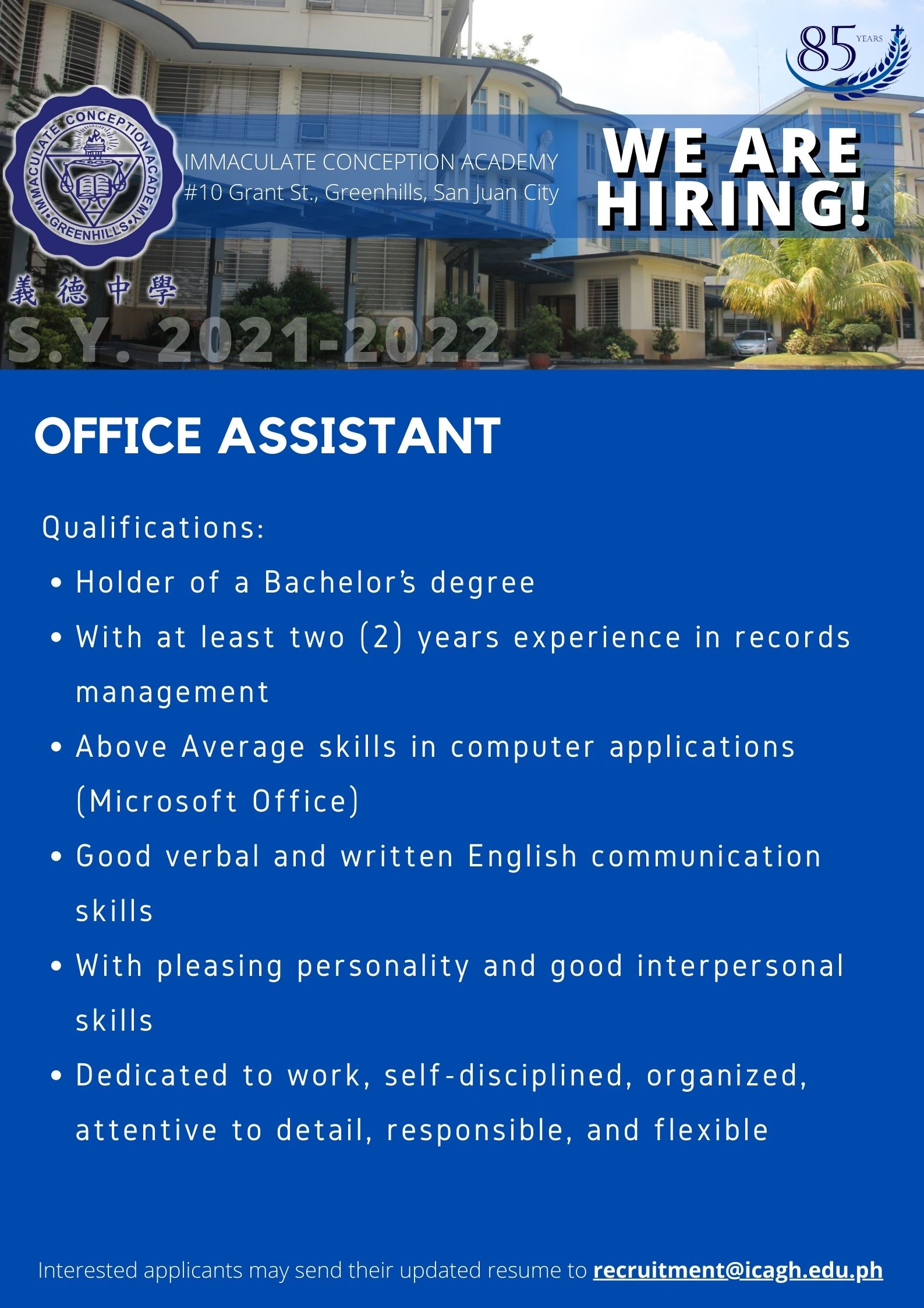 ICA Greenhills is a non-stock, non-profit elementary and secondary school owned and directed by the Missionary Sisters of the Immaculate Conception (MIC).