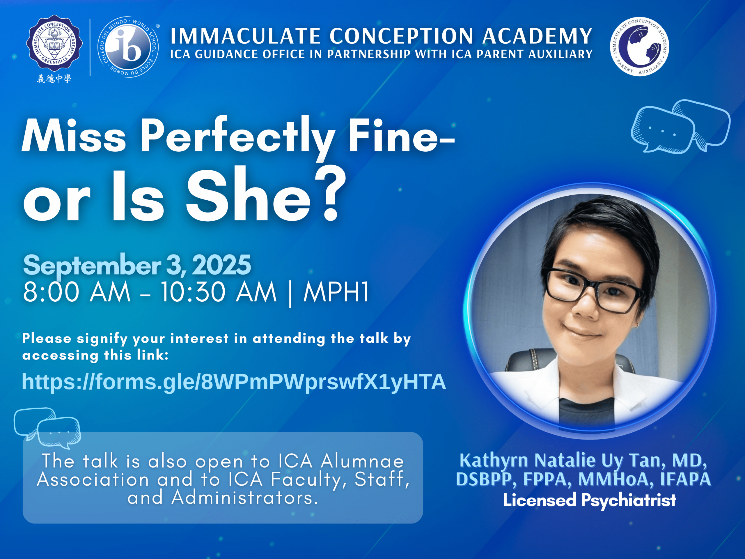 Mental health is not just about facing crisesβit is about everyday choices, open conversations, and being present for our daughters at every stage of childhood and adolescence. ICA Parents and Alumnae gathered in a safe and supportive space as the ICA Guidance Office and ICAPA hosted...