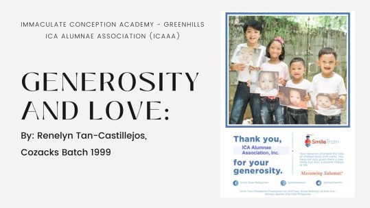 The Immaculate Conception Academy Alumnae Association (ICAAA) was founded in 1947 by the graduates of the Immaculate Conception Anglo Chinese Academy. This was 12 years after the Chinese families in Binondo requested the MIC sisters to open a school so that their baptized children can lead Christian lives through school formation. However, it was not until 1974 that ICAAA was reactivated by Sr. Teresita Canivel, MIC, when she became the Directress of the school. Every one who has graduated from ICA, since Batch 54, is a member of the association. An associate member is any ICAn, with at least two years of an academic term, but did not graduate from the school.