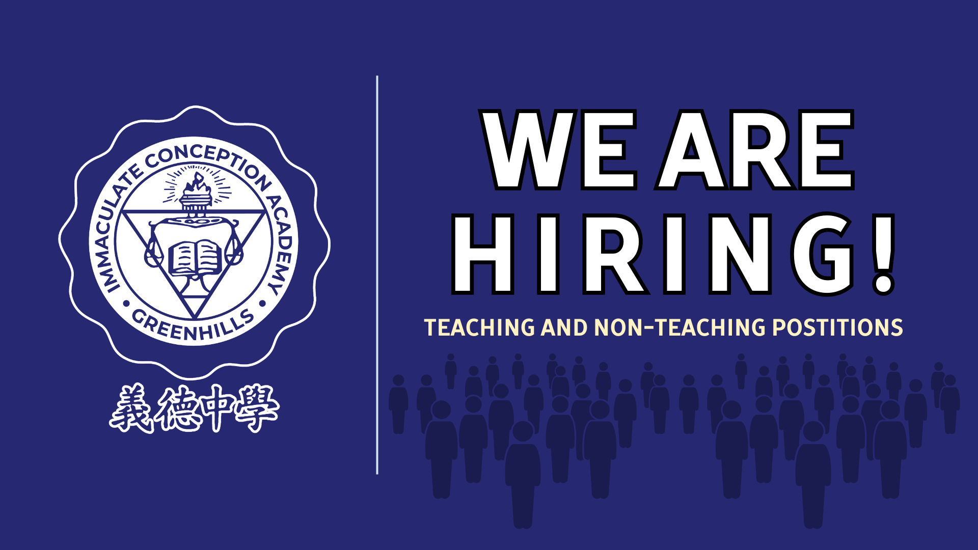 We are currently in need of the following personnel:   TEACHERS   GRADE SCHOOL: Science JUNIOR HIGH SCHOOL: English SENIOR HIGH SCHOOL: Chemistry and Research Accountancy and Business Management (ABM) Mathematics (for first semester) JOB DESCRIPTION: The teacher contributes to the total development of the ICA students. She is responsible in building up...